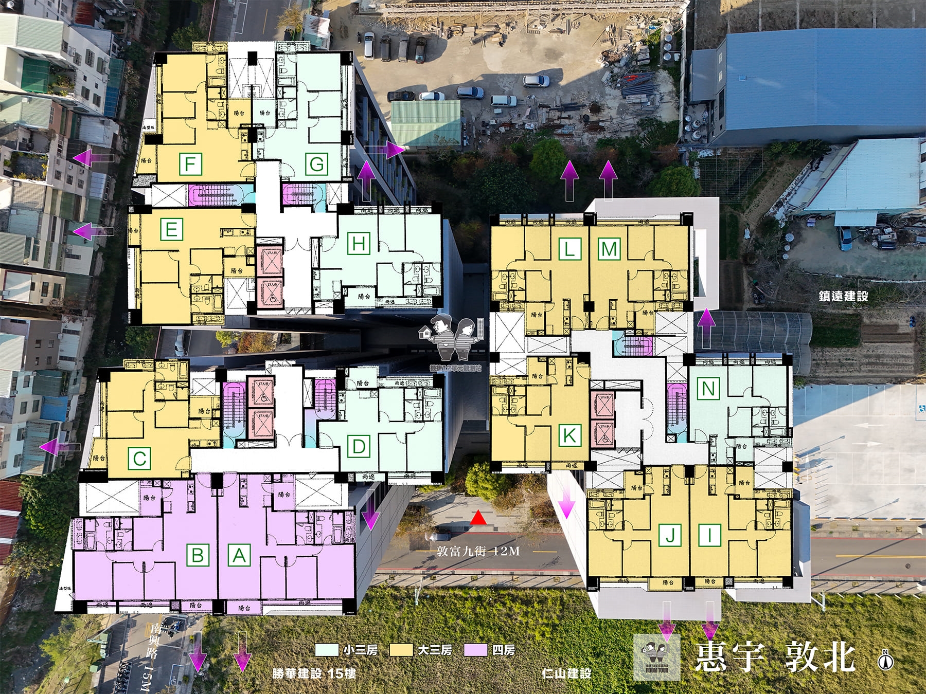 惠宇敦北為3-4房產品,14個棟別,分為3大棟,戶型較多,以下針對房型做個別介紹