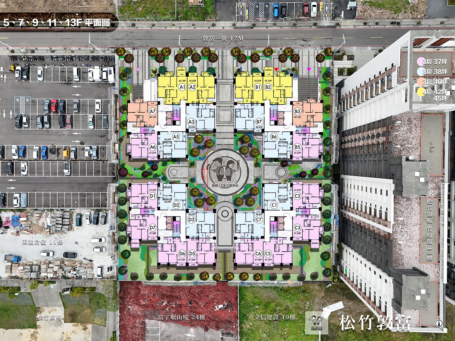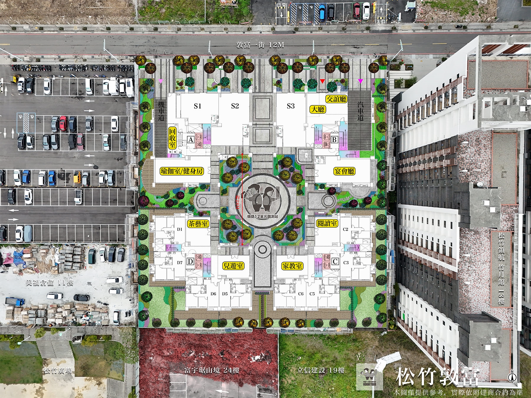 03 建案規劃 : 松竹敦富 這一案位於 北屯機捷特區 商場密度最高的碧柳段,走路就到大地商場、總站夜市、統一敦富商場,距離北屯好市多也蠻近的,屬與