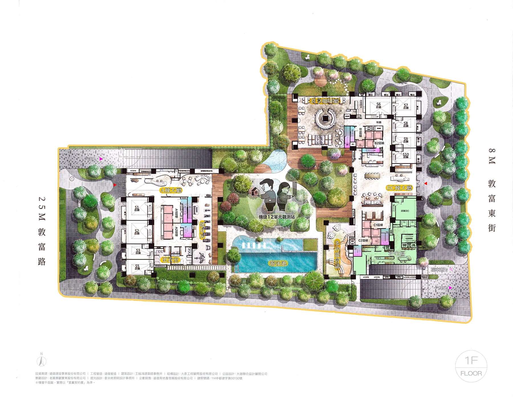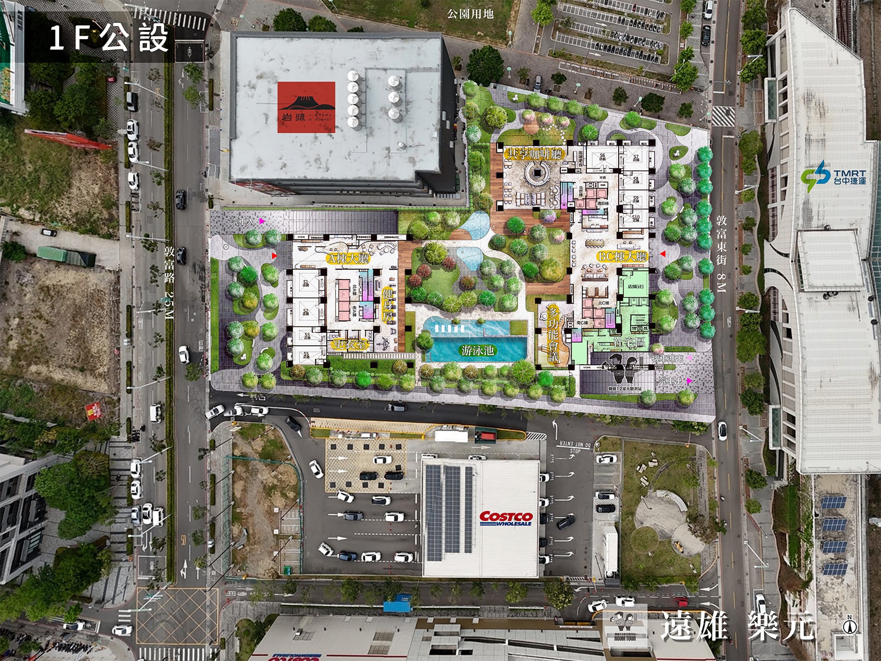 中庭花園、空中花園、交誼廳、游泳池、健身房、信箱區