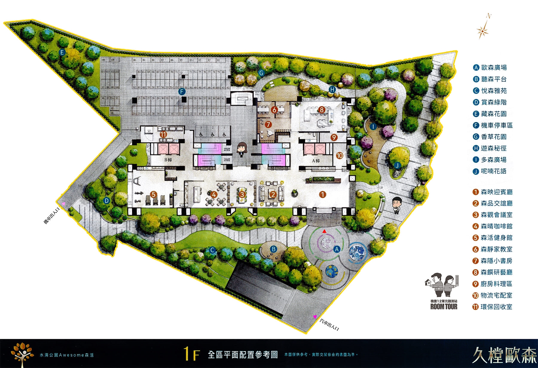 公設 接待大廳、交誼廳、會議室、咖啡館、健身房、小書房、家教室、媽媽教室、親子遊戲區、廚房料理區、宅配室