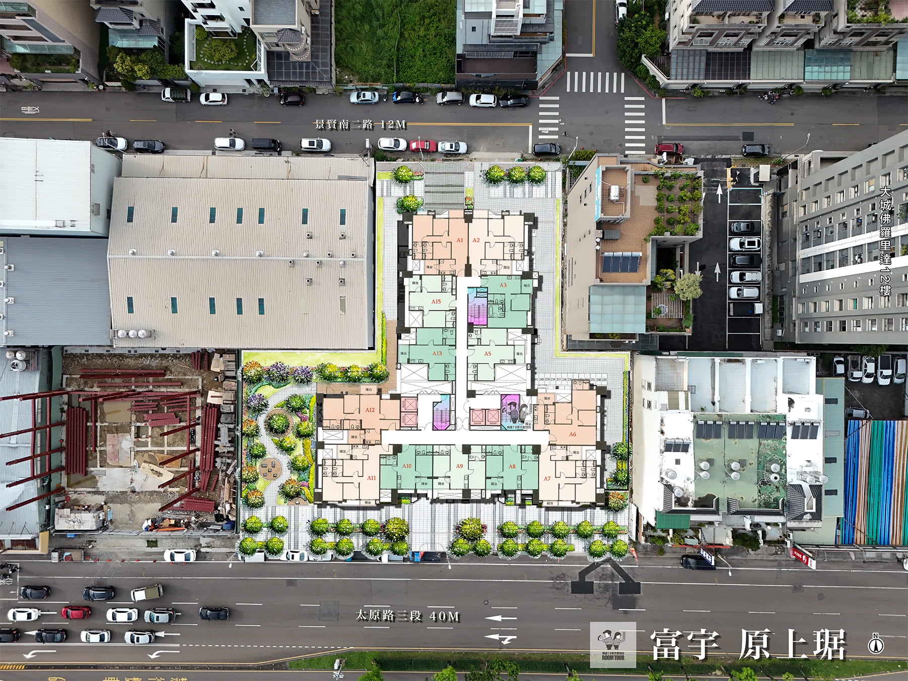 03 建案特色 : RADIANT JADE 十期地標|2~3房 |宜居建築 2房 25~27坪 ,3房 35 ~37坪 ,戶戶兩衛浴 | 北屯74環內 性價比最高! 觀後心得: 富宇原上琚位於十期重劃區 ,40米太原路第一排,東山高中旁,隔條太原路就是未來13單元 , 享有東山、軍功樹孝商圈 三商圈 。交通方面,3分鐘車程可至太原車站,亦有國道四號及74快速道路可利用,輕鬆往來各縣市。 格局規劃 | A1 A2 A6 A12 3房均為邊間 , 朝北俯瞰整個北10期 ,A2 坪數是三房中最大的 。A12 與 A11 有規劃入門落塵區。 2房 A15 A13朝西,面太原火車站 ,朝西可以看夕陽,一定很美,而 A3 A5 朝東看山景,大家比較喜歡的面向,比較值得一提的是A3 格局是全社區有設計主臥浴缸的,愛泡澡的客戶可以參考。以及 A5 與 A13 為 2房衛浴其中一個衛浴有開窗的 ,這方面大家在選擇戶別上可在注意。我個人是還沒選出來,因為浴缸也很吸引我,開窗也很吸引我,哈哈 另外在選擇宜居陽台上皆規劃在單數層 。戶數方面為單層13戶 ,但是中間有分區 ,一區為7戶配2梯,一區為6戶配2梯,電梯皆為17人座 ,飯店等級,全社區配有軟水系統 ,氣密窗皆使用YKK AP等級。 生活採買方面,車程約3分鐘可達全聯福利中心 (台中軍太店),最近從軍功路上經過 , 未來將增設寶雅,就在全聯旁邊而已 ,基地附近就是13單元新興重畫區,為北屯最後一塊重劃區 ,想必未來一定會有更多商機,大型商家看好,附近中國醫BOT將在年底正式啓用,前景無限 。