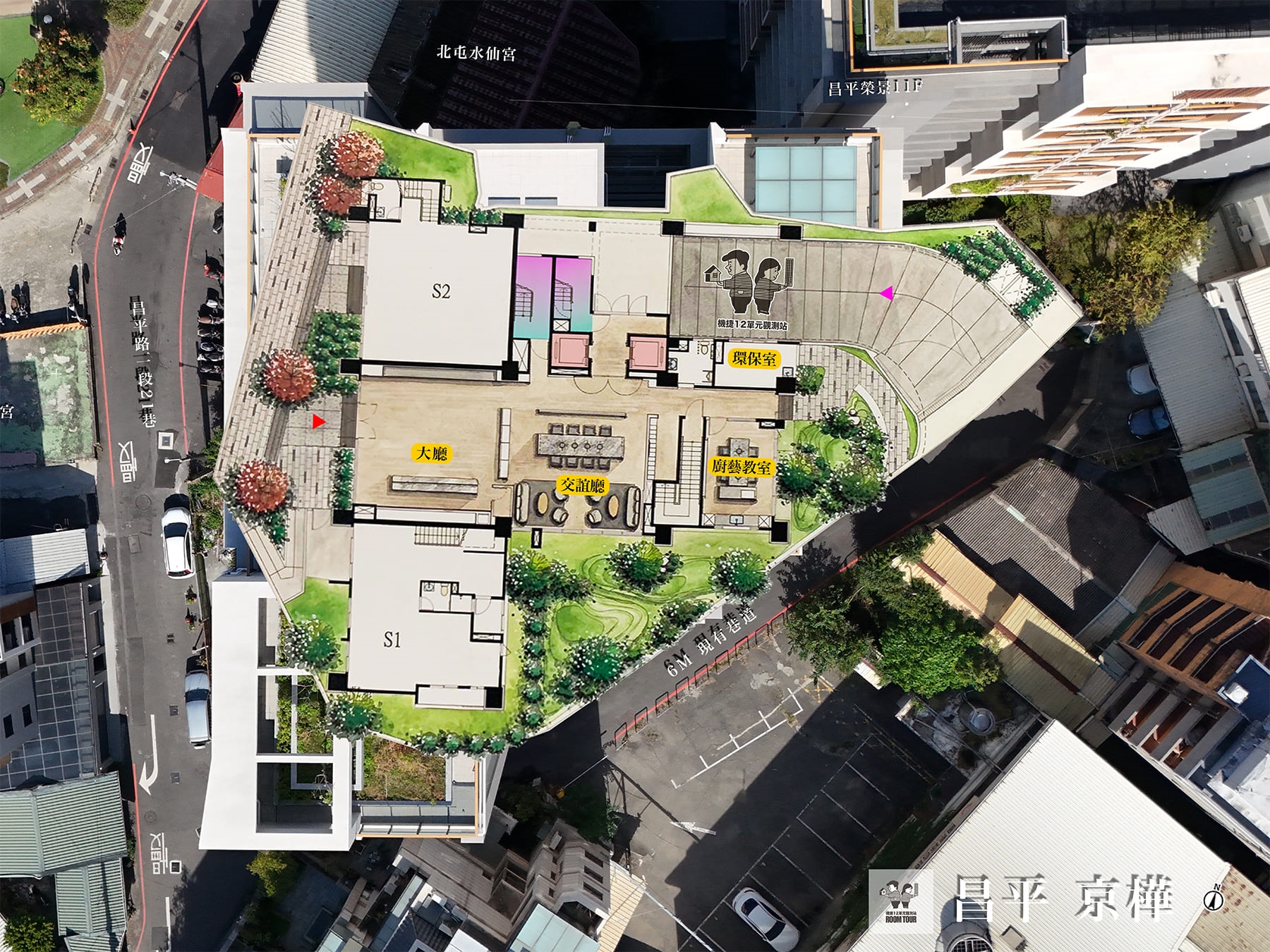 接待大廳、中庭花園、 交誼廳、兒童遊戲室、健身房、廚藝教室
